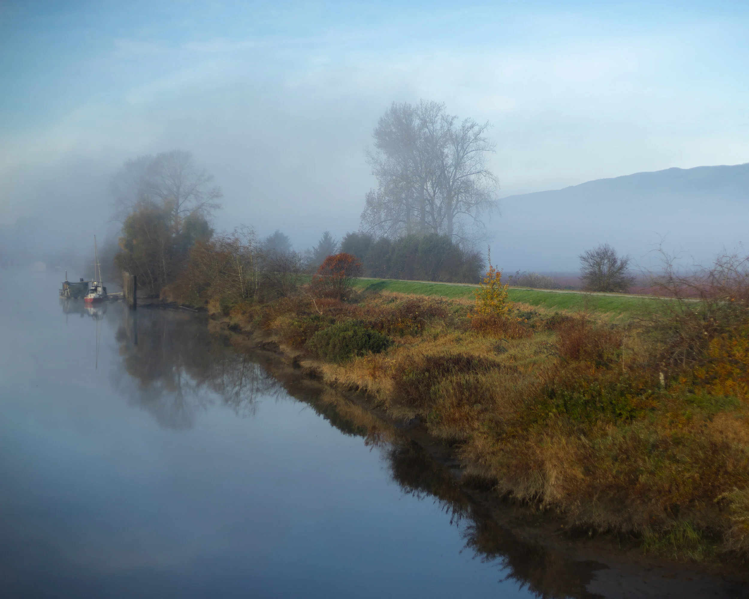My buddy and I got out of the city an hour or so before blue hour began, drove about 45min to Pitt-Addington Marsh, got there just in time for blue hour in the early morning. We stopped the car on the side of the road next to the marsh, everything was frosty and misty, it looked eerie but relaxing at the same time.